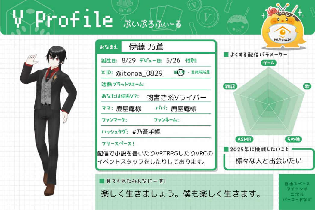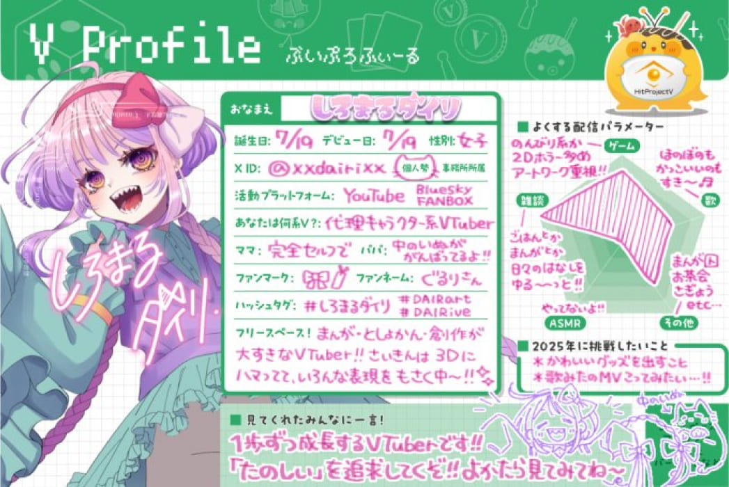 ■ 素材の改変:Vプロフィール素材の色変更や、イメージを損なう改変は禁止です。デコレーションや落書きなどで個性を出すのは大歓迎です!